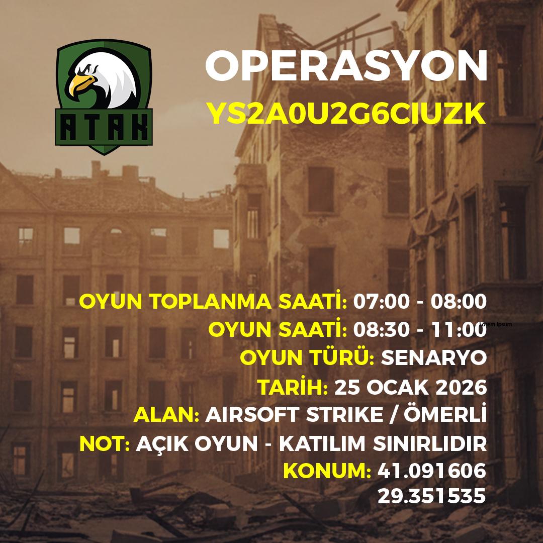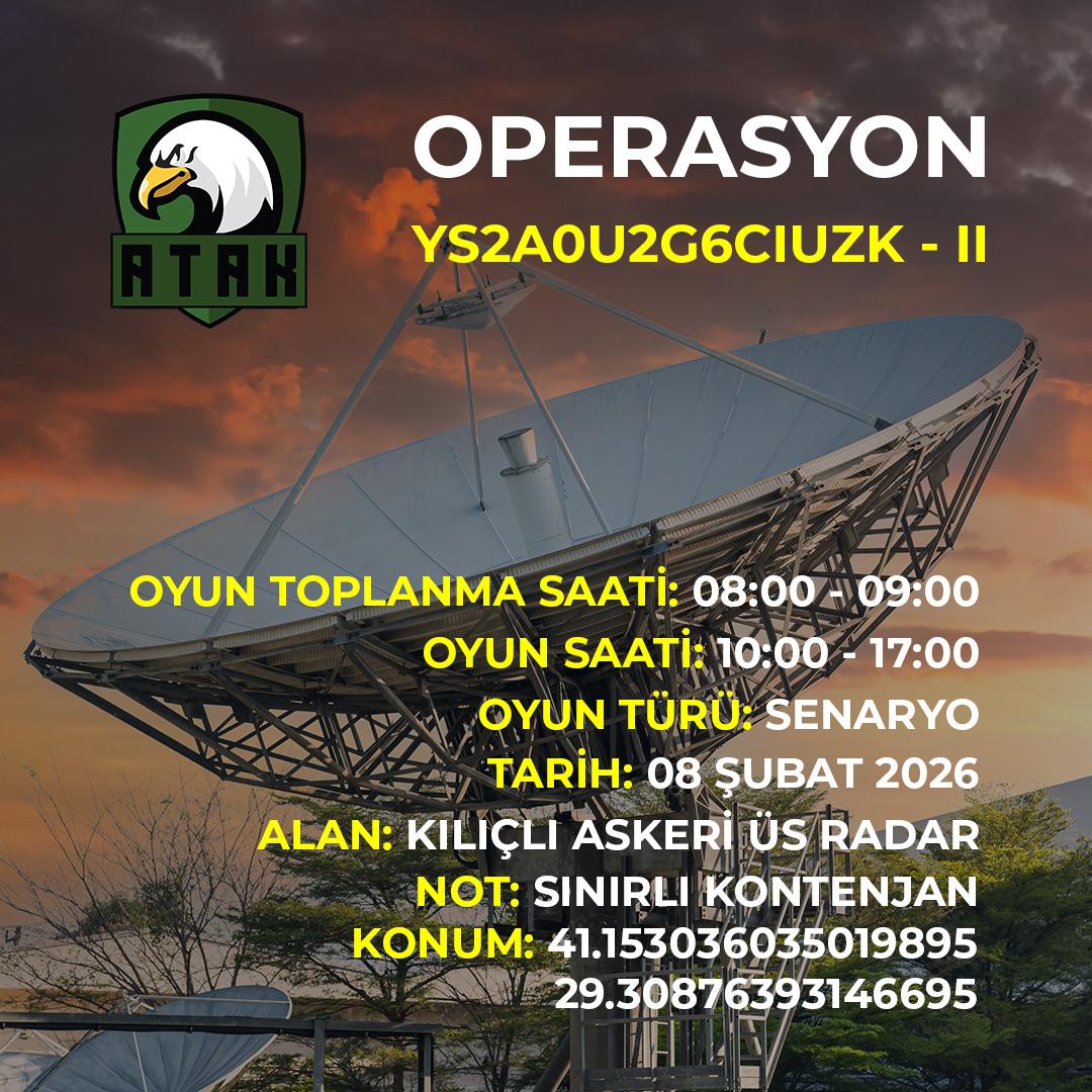 Tarih: 08 Şubat 2026 Toplanma Saati: 08:00 / 09:00 Oyun Saati: 10:00 / 17:00 Oyun Türü: Senaryo Alan: Kılıçlı Askeri Üs Radar Not: Sınırlı Kontenjan Atak […]